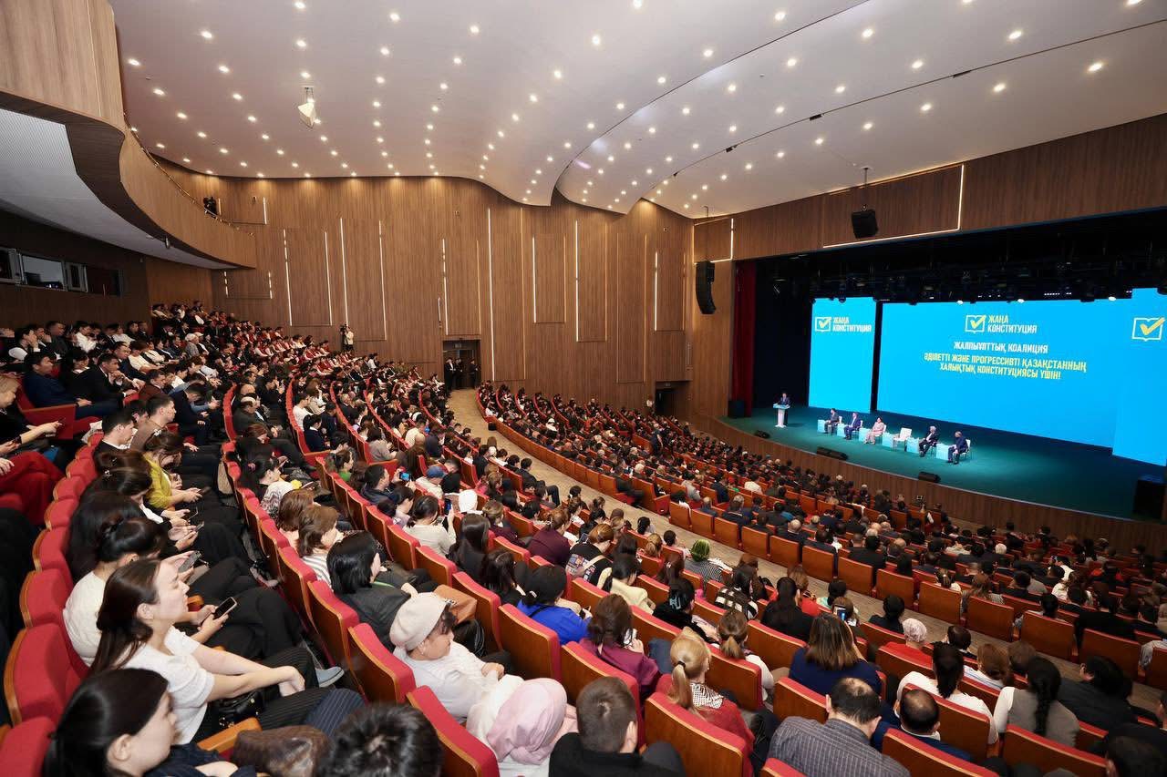 Түркістан қаласындағы конгресс-холлда мыңнан астам адам жиналды. Зиялы қауым өкілдері, дәрігерлер, педагогтар, кәсіпкерлер, ардагерлер, жастар және волонтерлер – әр түрлі жастағы азаматтар мен мамандық иелері Коалиция мүшелерінің жаңа Конституция жобасы жөніндегі пікіріне құлақ түріп, өз ойымен бөлісті және сұрақтарын қойды.